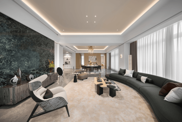 珍贵的土地,值得涵养高贵的生活。在建筑面积约410㎡样板中,大师设计精琢奢华的本象,在层高4米的朗阔场域中,打造270°巨幕观江视野,超大LDK家庭社交中心,为未来居者盛载流动且美好的生活情境。