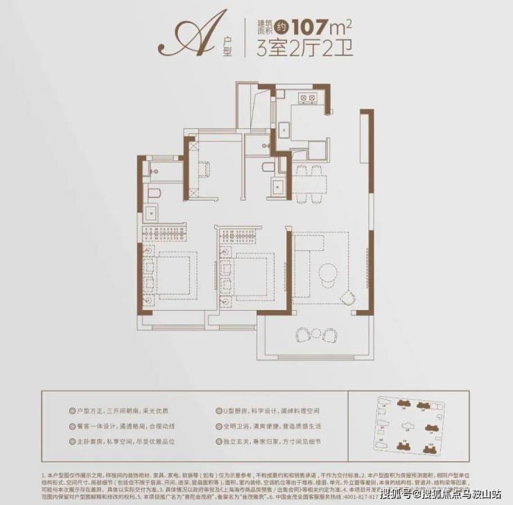该户型位于7#楼,整个户型兼顾功能性与舒适性,空间利用率高,集LDBK一体化、玄关入户、动静分区设计、U型厨房、双卧飘窗、强大收纳等多重优势。