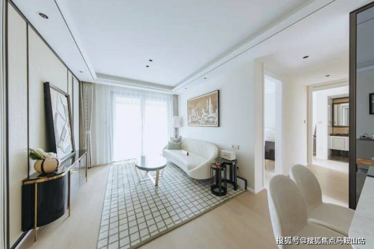 客厅三开间朝南,方正格局,功能区域分布清晰,动线灵活,没有廊道空间的浪费,充分利用每一寸室内空间。