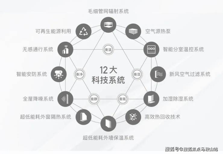 首先是户式科技系统。该系统以 “衡温、衡湿、衡氧、衡净、衡静”系统为理念。由 空气源热泵、高效热回收调湿新风机组、毛细管网、自控系统等组成。