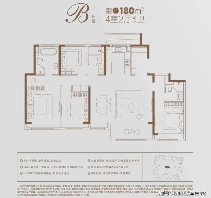 五开间朝南的全明通透,四房两厅三卫,南向大开间,整体的采光度、尺度感堪比别墅;双主卧设计,LDKB客餐厅一体化设计,大尺度横厅尽享阔景生活;动线合理的基础之上,户型格局方正;双套房+独立玄关,尽享大平层的归家仪式感!
