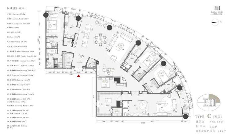 在形态的切割和面积大小的划分中,他会关注发散状平面所造成的小型空间夹角问题,利用丰富的设计经验化不利为有利,让空间的流线更加顺畅,并融入建筑的精神内涵。这是一个考虑、切磋,再整合的过程,是对设计者耐心与韧性的考验。