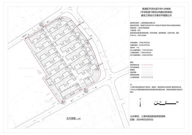 该地块建设用地面积 12666.4 平方米,规划用途为二类住宅组团用地,容积率 1.35,地上计容建筑面积为 17099.64 平方米。