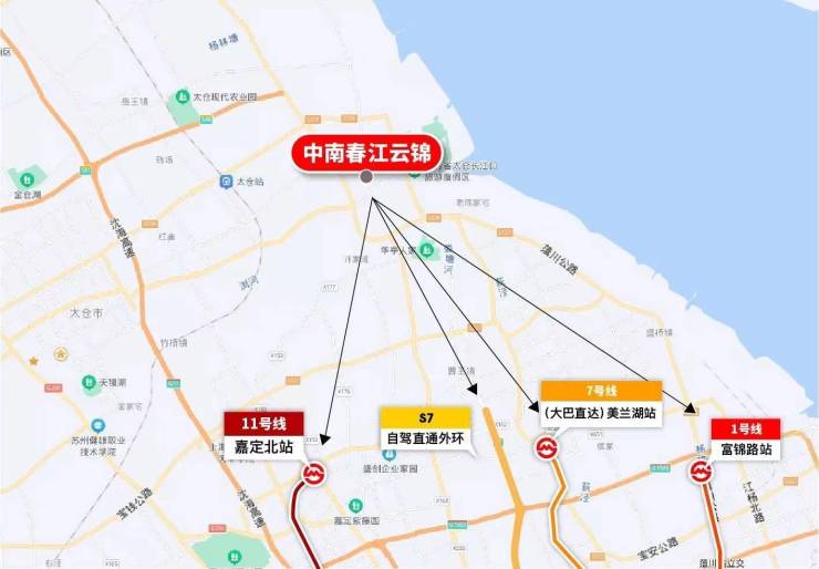 项目距离太仓站6.6Km,约15分钟车程;(门口即为浏河客运站)
