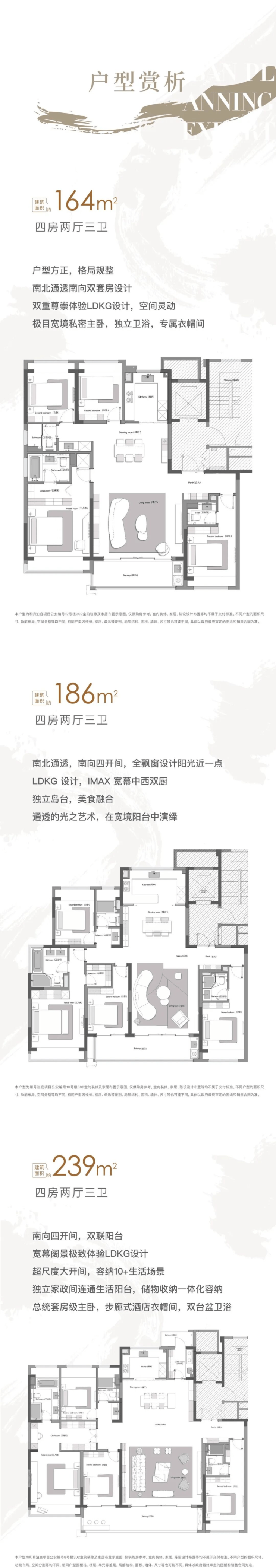 配置户型:建面约164㎡、建面约186㎡、建面约239㎡
