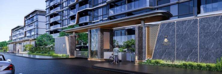 奢阔的社区入口,搭配蓝翡翠镜面奢石,为业主带来双重归家礼仪的同时,也为杨浦滨江增添了一处绝美的网红打卡地。