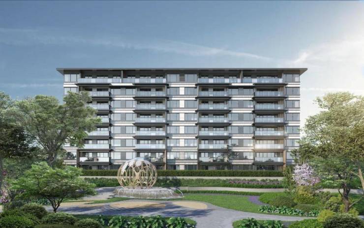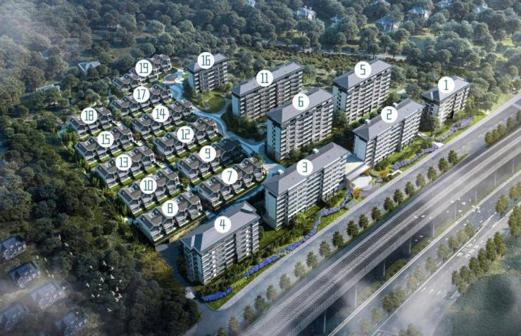 ◎ 项目整体以亚洲美学打造氧生静雅的沉浸式氛围生态小区。建筑呈一字型展开,迎纳更多阳光,拥宽景生活。造型特征上联排和洋房均采用坡屋顶的形式,立面色彩上用灰白色的调子与周边环境相融合,营造符合当代人生活方式和审美需求的建筑形象。