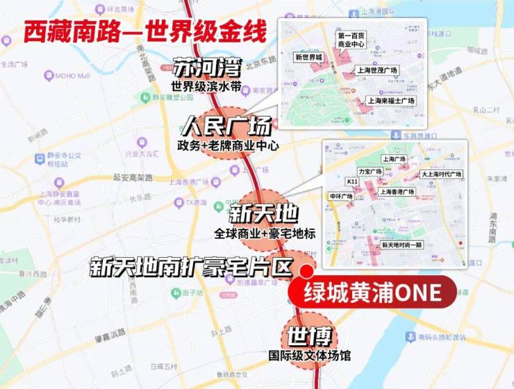 项目毗邻的西藏南路,官方定位"复合功能发展轴"。我认为不仅是黄浦的中轴,更是一条世界级金线,既是豪宅金线,又是商业商务金线: