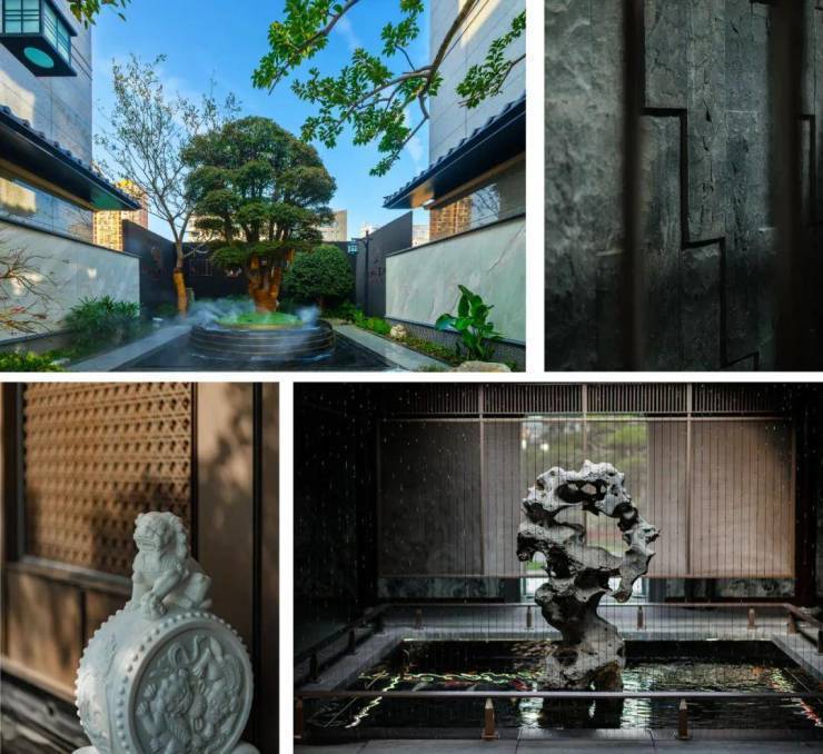 近40吨汉白玉、近100吨原生太湖石、巴金西口“璀璨年华”奢石、300岁高龄的进口珊瑚枫、20年红梅,数十年贵妃罗汉松、羽毛枫和黑松,近百年的原生紫薇……随处可见。