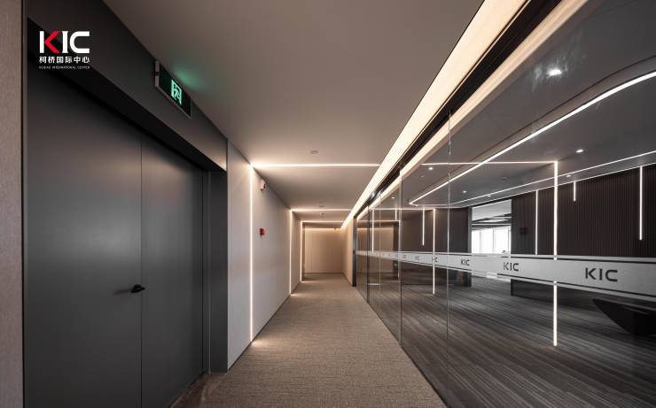 【公共走道】墙面蜂窝铝板+墙布硬包,顶面蜂窝铝板+石膏板吊顶,地面架空地板+日本进口地毯;