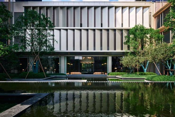 内外双园,全景围合式设计,营造都市里的桃花源。兼具东方气质与摩登风格,自在心奢生活,传递“大隐隐于市,深隐于自然”的度假式生活体验。