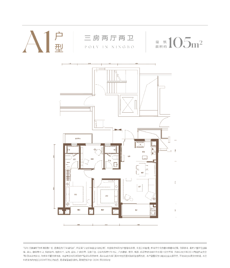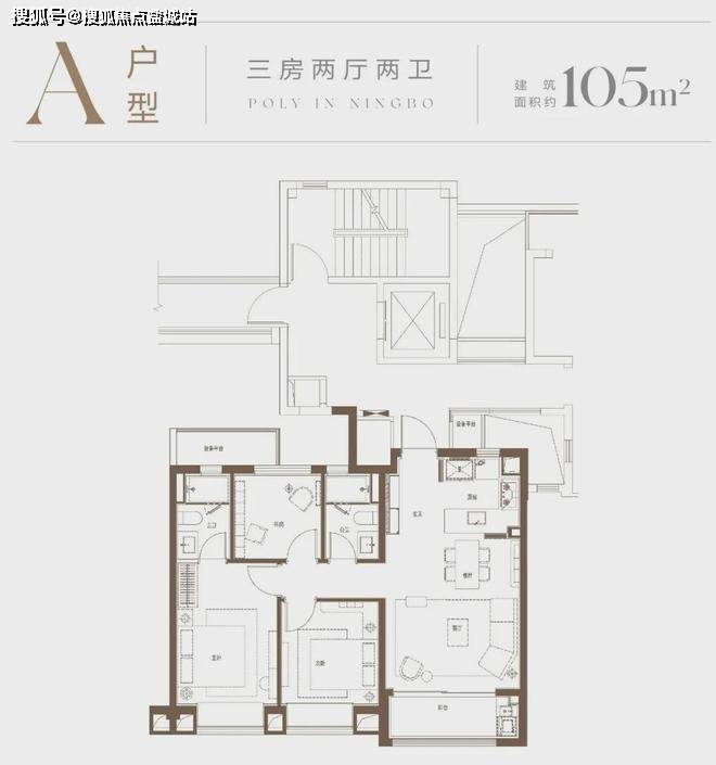其中,被誉为爆款婚房的建筑面积约105㎡,缔造年轻人钟爱的半开放式厨房,以及南向双卧皆带飘窗,精致且轻奢,满足爱与归属。