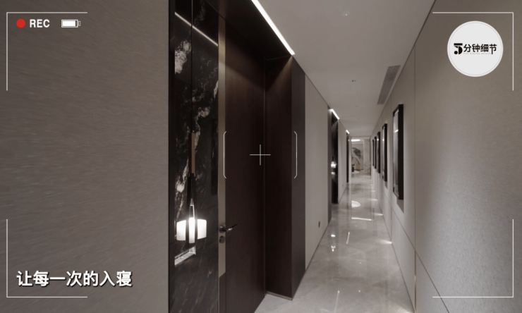 卧室门口,都有一盏精致的吊灯,和奢石壁龛一起完整包裹整个门