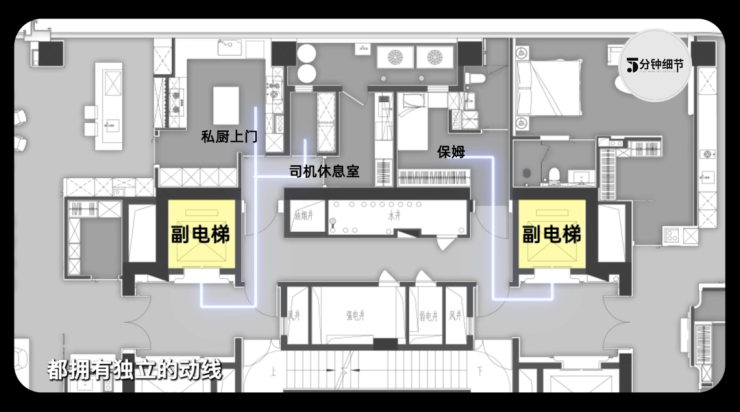 连司机、保姆都有独立的电梯去往各自的工作、休息区