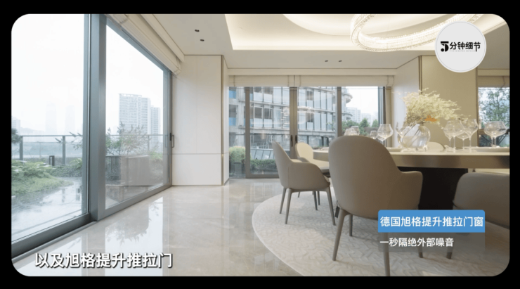 整个室内都采用德国旭格提升推拉门和窗,隔音降噪效果超强,可以做到1秒隔绝外部噪音