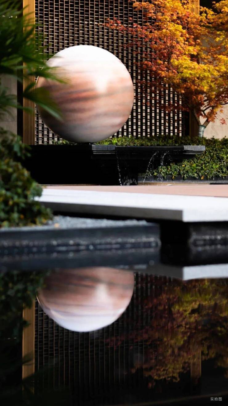 一轴·三萃·七境的千万级中轴通过精心布局的绿植、水景和石景,营造出宁静而雅致的生活空间。