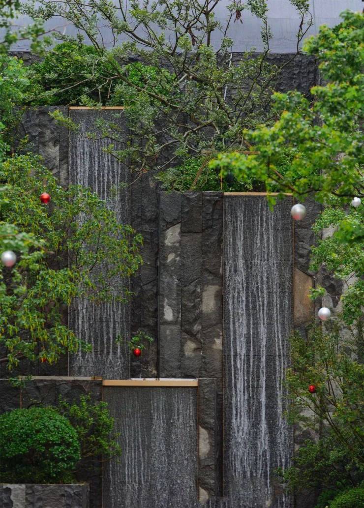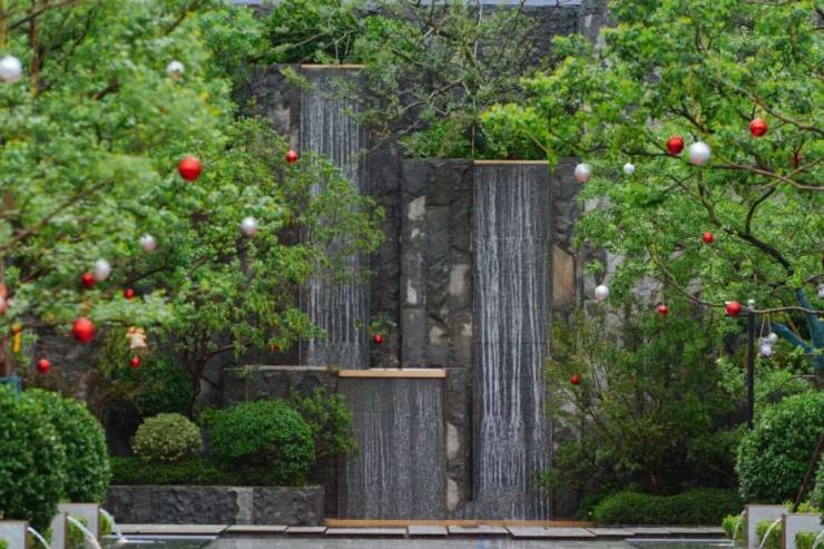 值得一提的是,龍宸壹號南区约9米高的叠水瀑布设计精巧,成为整个景观的点睛之笔。假山以天然石材为主,错落有致地排列,仿佛天然生成。