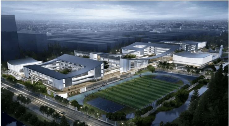 项目西侧在建的星灿九年一贯制学校,总用地面积64000㎡,总建筑面积约为99000㎡;办学规模63班,其中星灿路以北为小学42班,星灿路以南为中学21班。