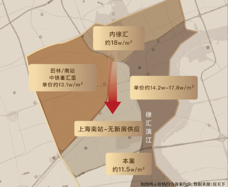 上海沿江而兴,地产开发沿江由北向南辐射发展。