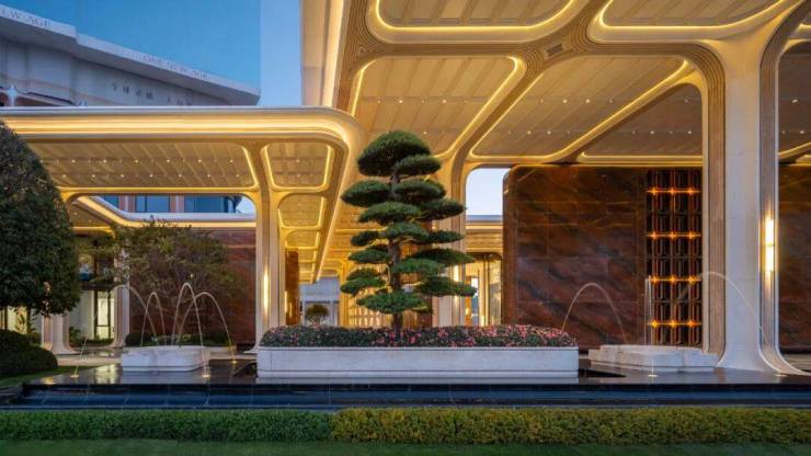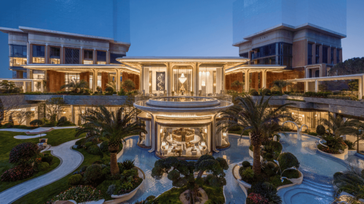 奥映世纪轩汲取度假庄园灵感,融自然、立体、奢华质感于一体,以约200米横向景观轴串联“一核、一庭、一池、两大花园”超级场景,营造更丰富的度假体验。