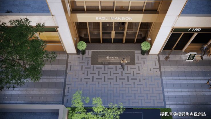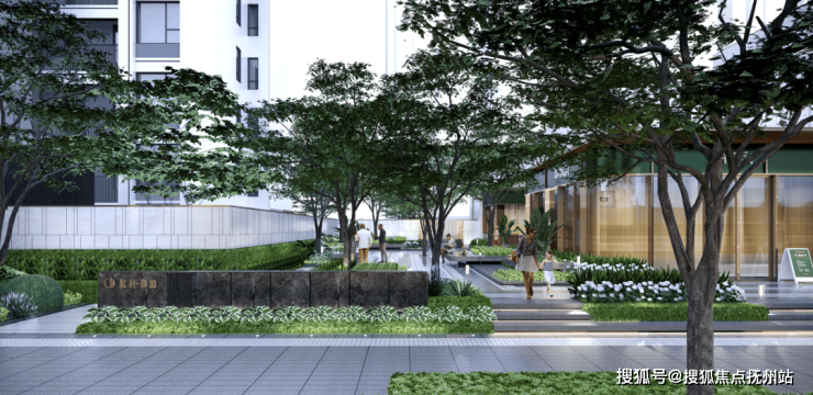 在空间上,项目让出城市街角空间形成街角绿化社区名片,约75米超长尺度城市街区生活形象,打造城市温情归家界面。
