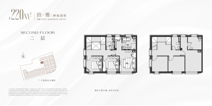 二层:双套房配置,预留2 米大床摆放空间,兼顾舒适与私密。大尺度开间,落地窗让阳光肆意流淌,开间均在4米以上。