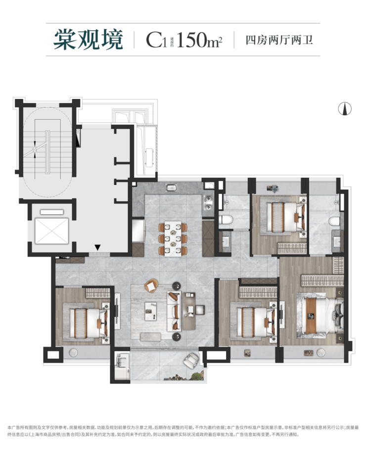 四开间朝南|主卧套房设计|餐客厅一体化布局