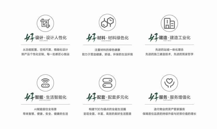 深铁铭著坊采用保温一体铝板外立面、精装交付标准,并全面践行“六好六化”产品体系: