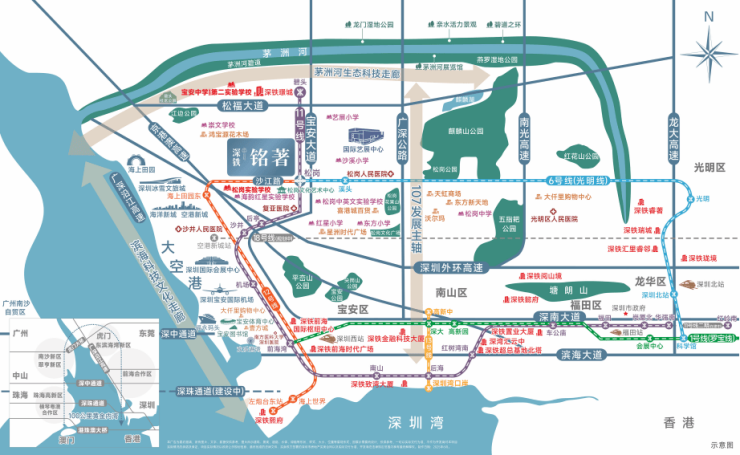 项目位于宝安松岗·松岗地铁站上盖,正处“黄金内湾”战略腹地: