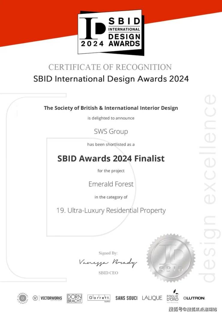 与此同时,被誉为设计界的“奥斯卡”的英国SBID国际设计大奖(SBID International Design Awards)也揭晓了2024年度入围名单。绿宝园·翡梵荣登亚洲超豪华住宅类别(Ultra-Luxury Residential Property)入围榜单,成为全亚洲仅有的三大入选作品之一。