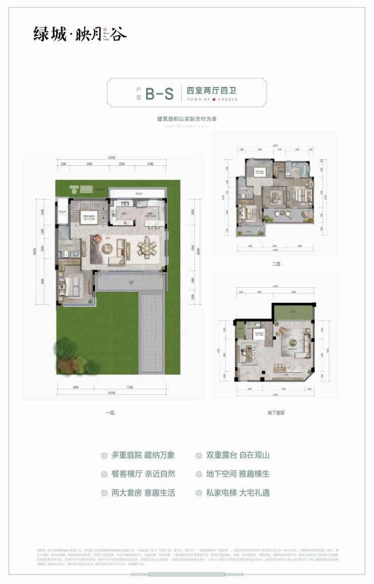 2、三层金色中式合院约220㎡;(地上两层层高约4.2米,地下一层层高约5.1米,总价约638万-750万)