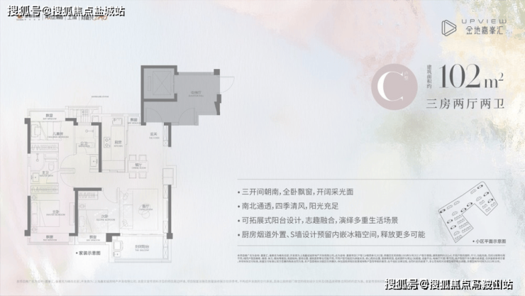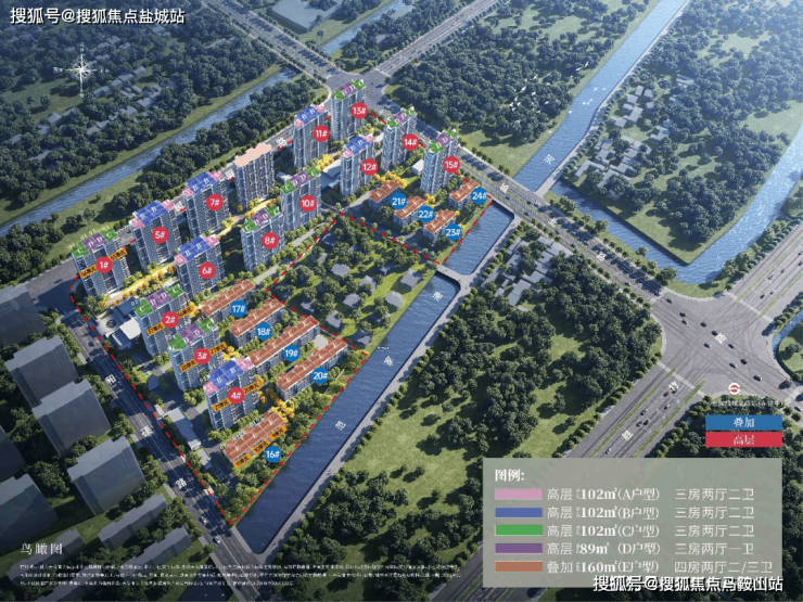产品类型:建筑面积约89-102㎡精致高层 、建筑面积约160㎡稀缺叠加