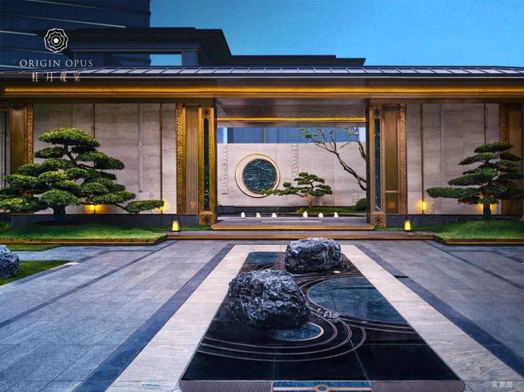 东方隽永礼制 自然风光和鸣:精心打造现代宋韵奢雅大堂,百达翡绿奢石景墙,豪华酒店式门头、仪式门庭、叠石水景、仪式廊桥、滨水会客厅、观景眺望台等多重场景,享受沉浸式风景交互体验。