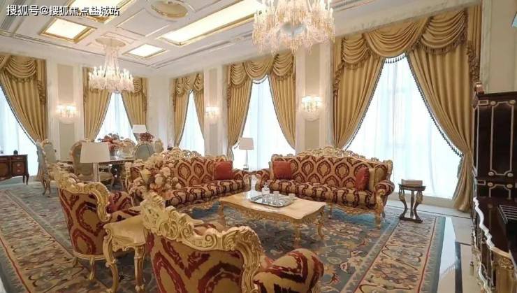 客厅地面采用“凡尔赛宫”地花穿透拼精湛工艺,所有石材都是选用意大利鱼肚白大理石。