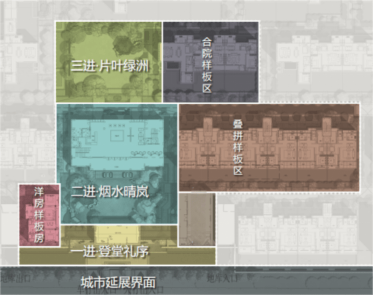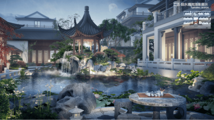 溪悦阁尊崇传统礼制思想,匠心呈现中式进门礼序之中的三进礼制格局:一进府门(登门望府),二进内院(水韵林烟),三进私宅(踏莎疏影)。层层递进的三进门院彰显儒家礼序精神,结合沙溪千载文脉特色,整体形成三进院落格局,打造仪式感、尊崇感、舒适感兼具的新中式低密院落。