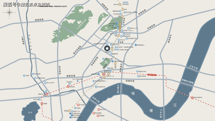 地铁9号线乔司站直线距离项目仅300米,不远处就是杭海路、留石快速路、空港高架路等都是一脚油门的事。板块处在钱江新城2.0、艮北、丰收湖、临平新城几个高能级板块的交汇处,到达周边各大商圈(万象城、江河汇、IFC、五堡TOD等)都很近,感受一下中心被包围的幸福——
