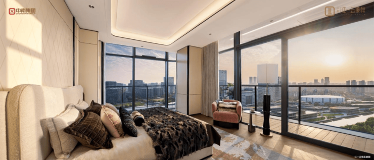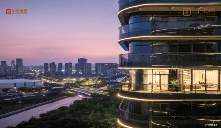 今天大平层研究院带大家参观的,就是滨江核心区被公园水系围绕的健康度假大平层,带360°100m阳台的——中南江一云境。