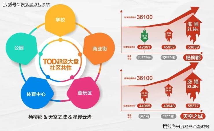 且从市场表现看,以杨柳郡目前挂牌价53839元/㎡,所在板块新房限价44400元/㎡;天空之城挂牌价55377元/㎡,所在板块新房限价36100元/㎡(数据来源:链家7.1挂牌均价),自带配套大社区溢价相较普通社区更具长线优势。