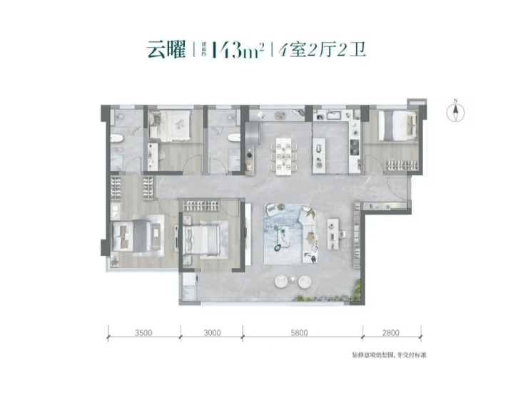 龙湖·青云阙占地面积约31030㎡,建筑面积约83781㎡,容积率约2.7,绿化率约35%,规划8栋高层住宅,共计531套房源,主推户型为建面约115㎡、建面约143㎡、建面约192㎡滨水大平层,迭新泉州改善人居。