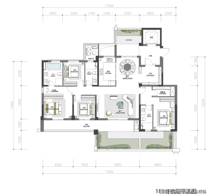 空中双庭院,打造墅级双入户动线,晨观云海翻涌,暮赏大城烟火。