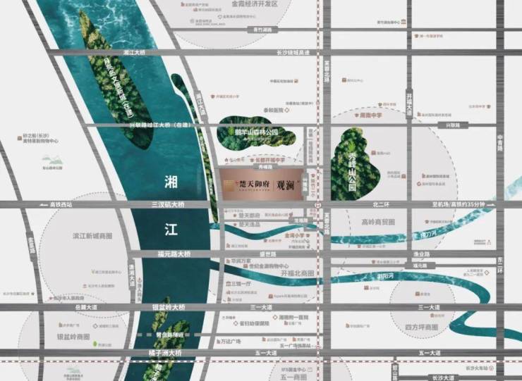 生态:毗邻湘江风光带、秀峰山公园、鹅羊山森林公园,生态环境优越。