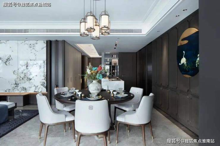 行云流水般的写意构图,遵从文化传统中的虚与实,木质圆桌成为聚会中心,加上现代艺术的精致点缀,极具场景仪式感。