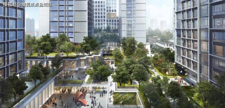 项目为开放式社区设计,采用空中花园将社区立体连接在一起。采用地面抬高3层的设计,其中3层以下为商业底盘。