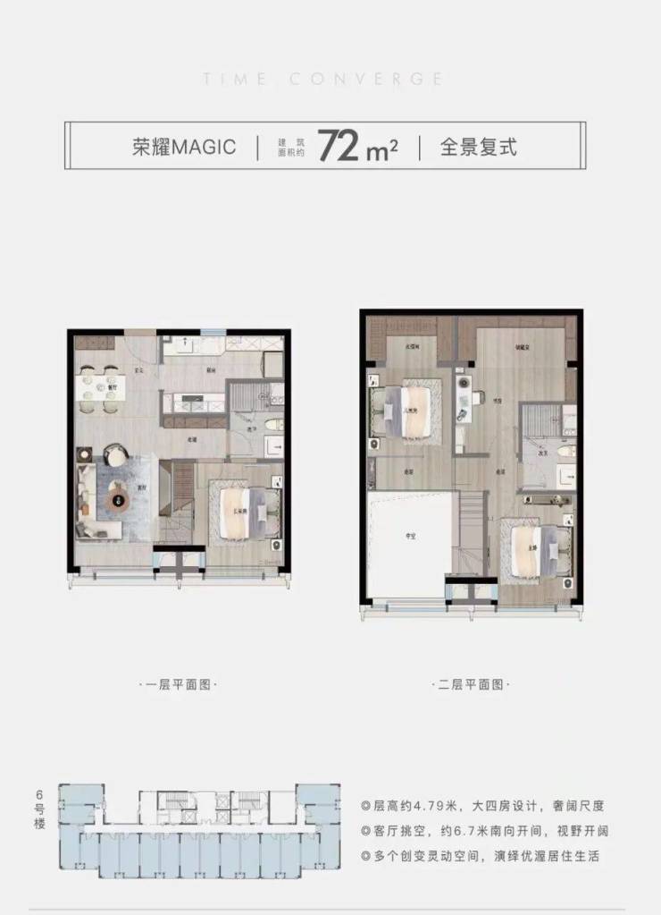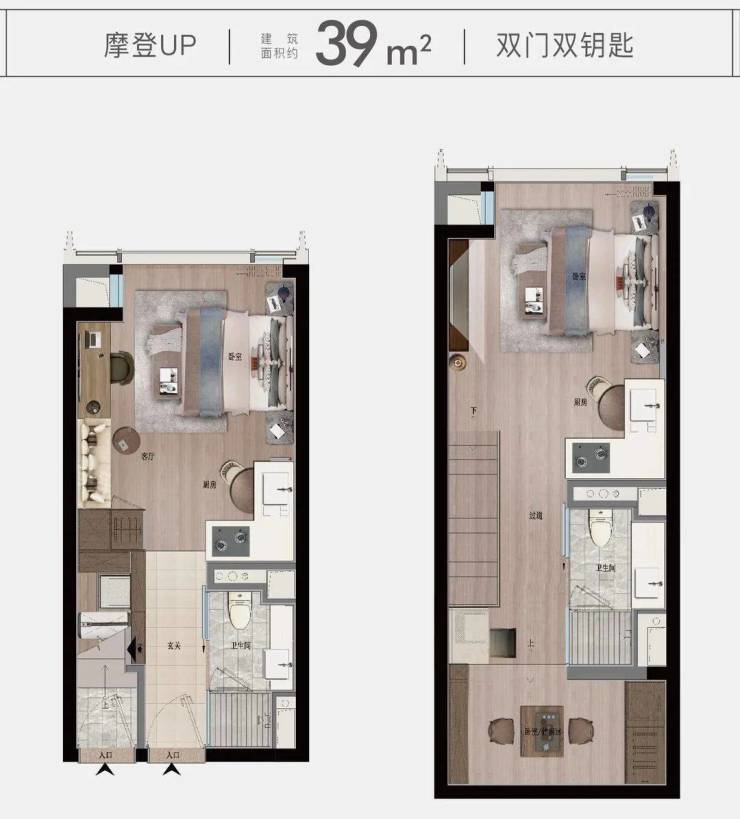 一期总建面约17万方,户型面积建面约27-38-72㎡全功能LOFT公寓“双钥匙、双套间“设计,一套投入,双倍收益上下层独门入户,互不干扰,约4.79米层高,总价50万起!舒阔起居卫浴、厨房、餐厅、客厅、卧室、多功能区一应俱全!目前仅接受预约咨询!