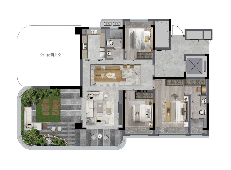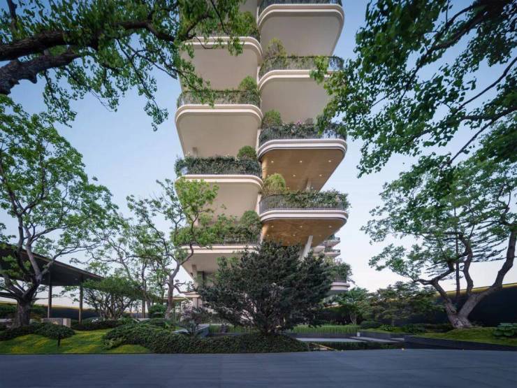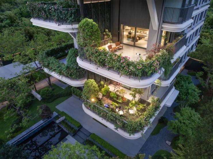 在这里,出则城市级生态客厅,入则约5万方森谷浮岛园林,奢石名木的层层奢意,绵延如翡翠般的立体森境,向上滋养着一座座空中花园,让内心的丰沃与愉悦,在每一寸私属院境里生根、绽放。