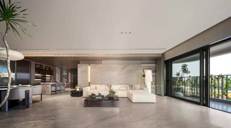约50㎡宴会级双厅与约6.3米开间花园紧密相连,让“客厅院落化”,灵活满足多元化需求,家族聚餐、圈层会客、亲子互动、休闲赏景等,让独处与欢聚在此自如转换。