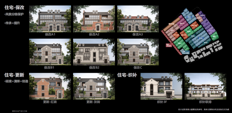 更新改建:尊重历史肌理前提下,演绎和再创造具有一定风貌感的立面风格