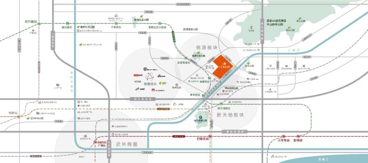 板块荣耀:智慧网谷、杭钢商圈、新天地商圈三大精英板块环伺左右,文化、产业、商业、生活在此交汇融合,共筑桃源辉煌篇章,定义城市未来走向。