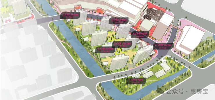 被水系环绕的社区,繁星式的楼栋布局,充满仪式感的景观与浓绿自然的植被,无论是精心设计的景观小品,还是那郁郁葱葱的树木花草,都让你在繁忙的生活中找到一份心灵的慰藉与安宁。同时将四季植物与多层景观巧妙融合,构建出一幅如诗如画的自然画卷,植入其中的主题架空层成为邻里之间的聚场,让人们能够在林下相遇,在自然中被治愈。