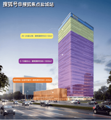 主楼总共24层,1层为精品商业,2-19层为办公(其中有两层开发商自持),20-24层为公寓。裙楼共三层,为精品商业。